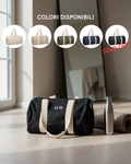 Linee essenziali, materiali consapevoli e funzionalità pensata per accompagnarti ogni giorno. Questo borsone in cotone riciclato unisce estetica minimal e praticità, adattandosi con naturalezza sia alla palestra che ai viaggi brevi. I colori e il design pulito lo rendono un accessorio versatile, elegante e senza tempo.