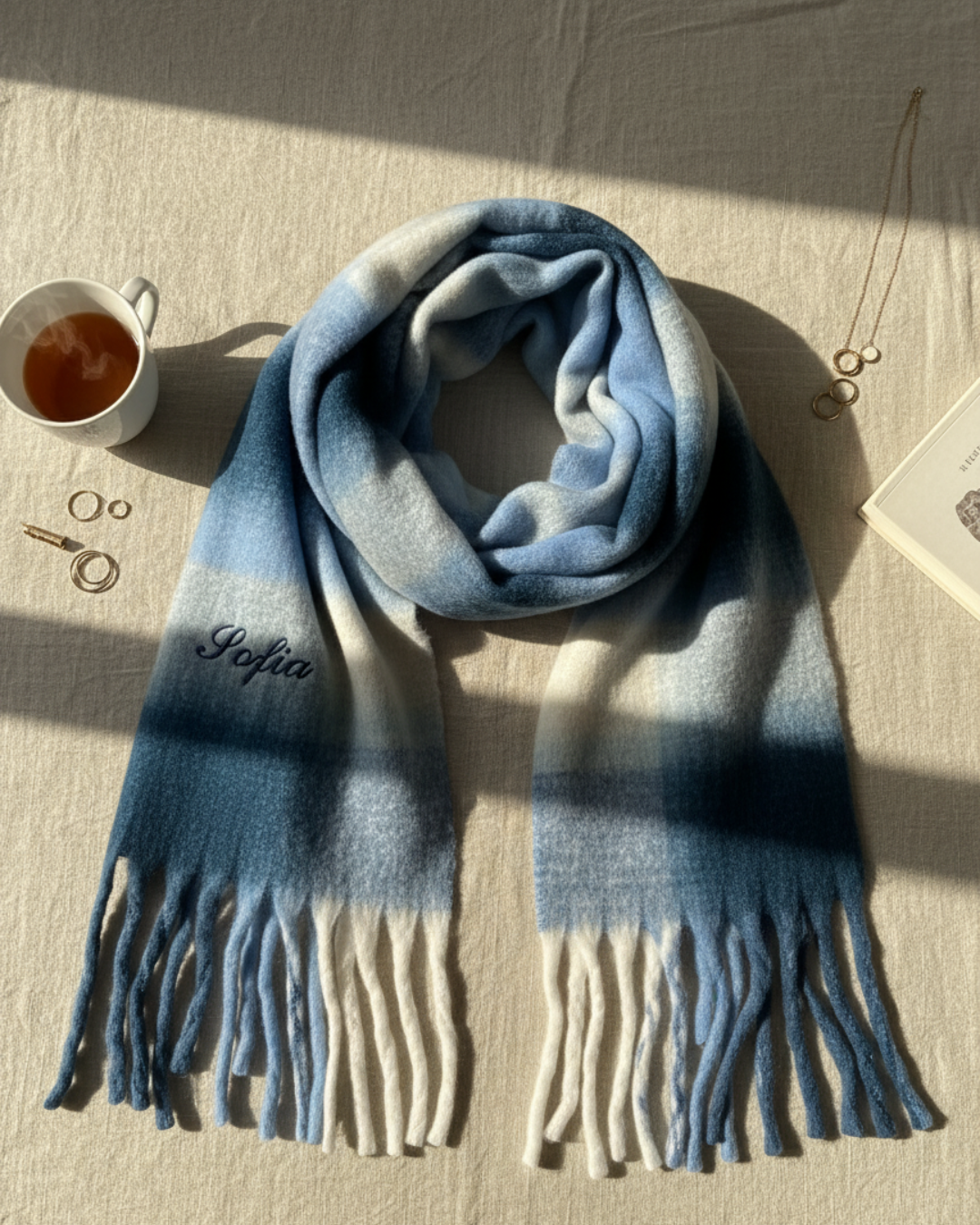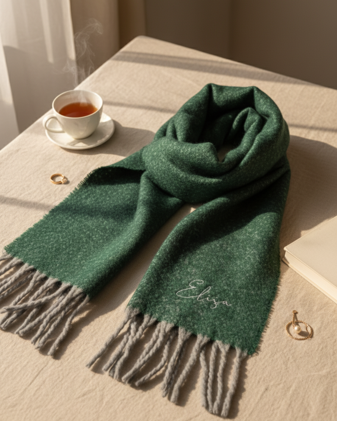 Aggiungi il tuo nome o le tue iniziali ricamate per rendere ogni sciarpa un pezzo esclusivo.
